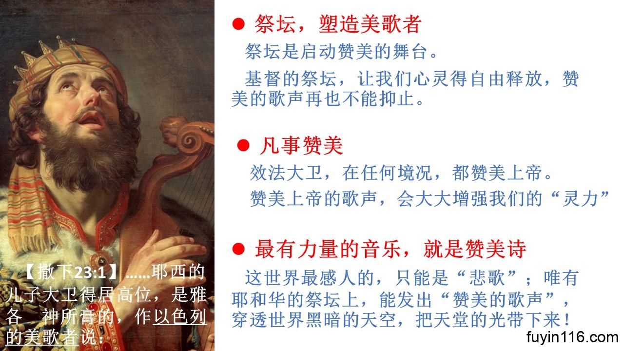 求主让每一个听众,从“大卫的祭坛”中得重要的提醒,知道怎样成为真正刚强的人,怎样在你的祭坛上仰望你的恩典,谦卑与你同行,求主开我们的喉咙,让我们成为常常颂赞上帝的新人类。
