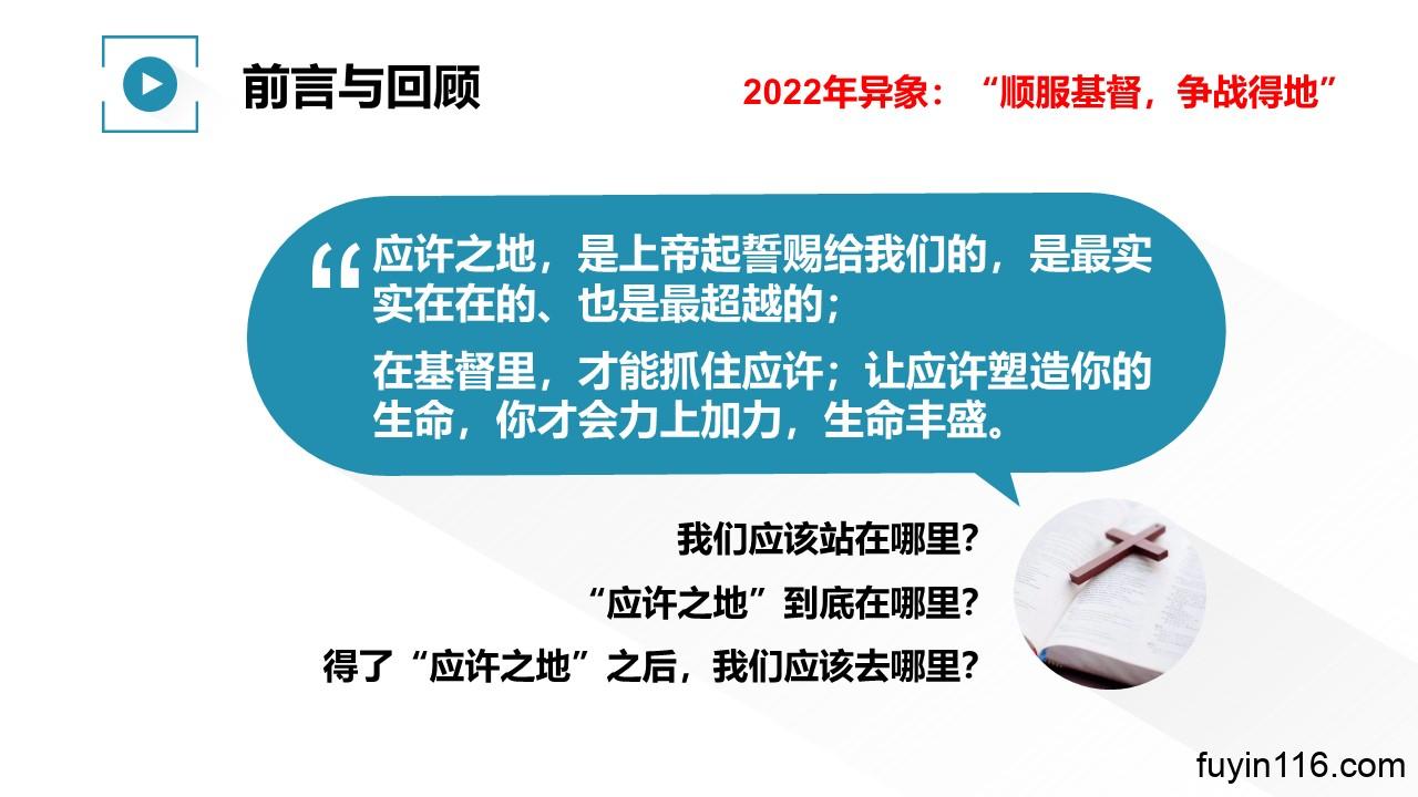 “顺 服 基 督,争 战 得 地”,是主赐给我们2022年的异象。