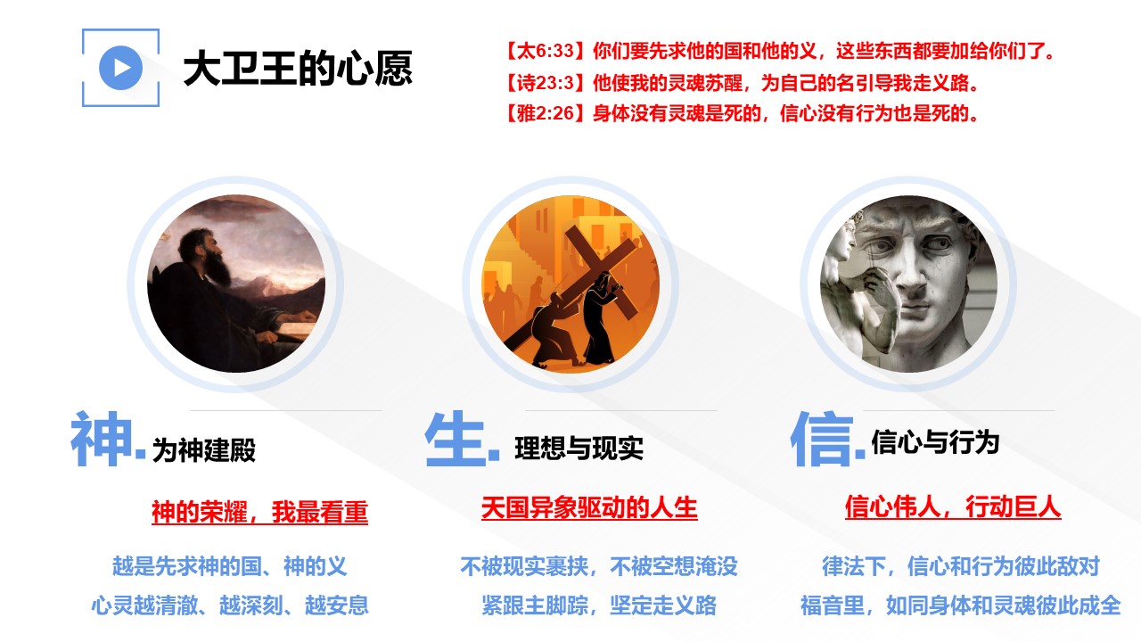 大卫所信的上帝,祂的心愿又如何,给我们哪些安慰和激励?