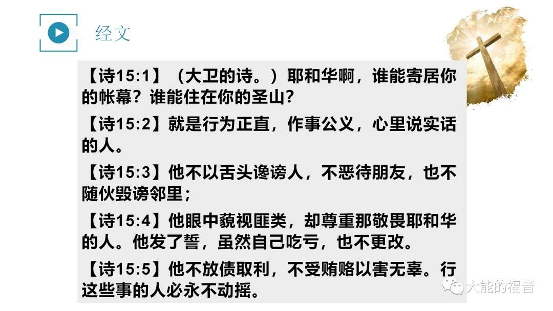 今天是分享的是《诗篇15篇》的经文。