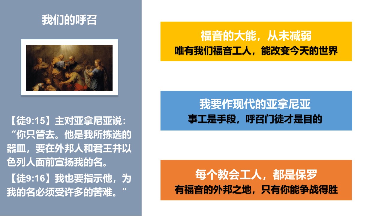 借着这段经文,上帝给今天的我们,赐下哪些呼召?