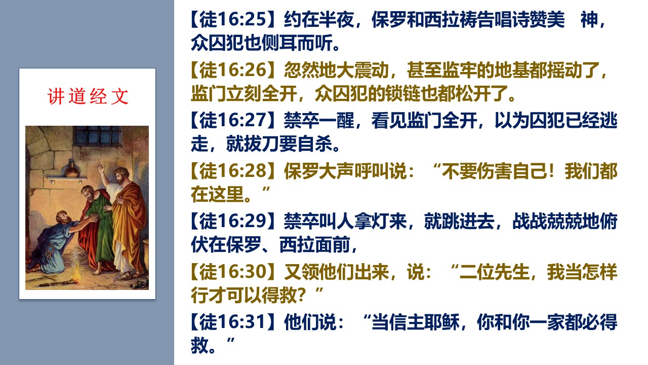 使徒行传16章,上帝行了一件惊人的神迹,祂让拘禁使徒的监牢的门突然打开了。