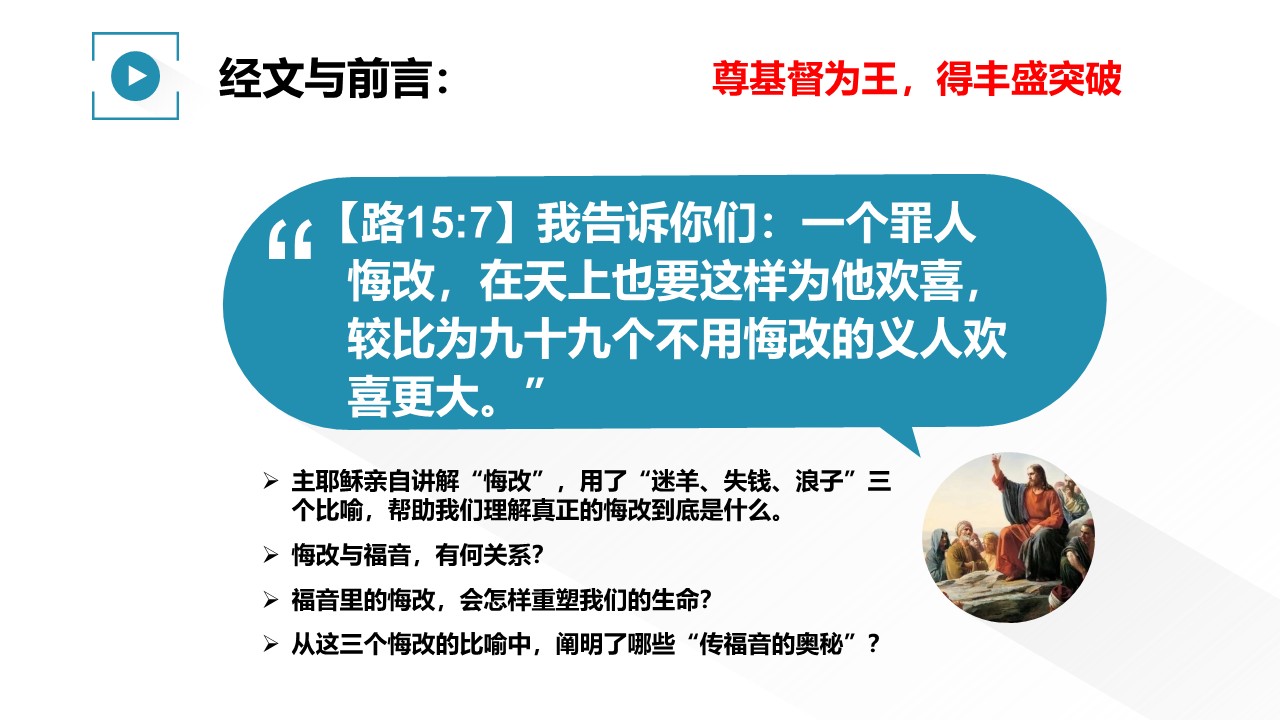 关于悔改,最权威的讲解,就是主耶稣。