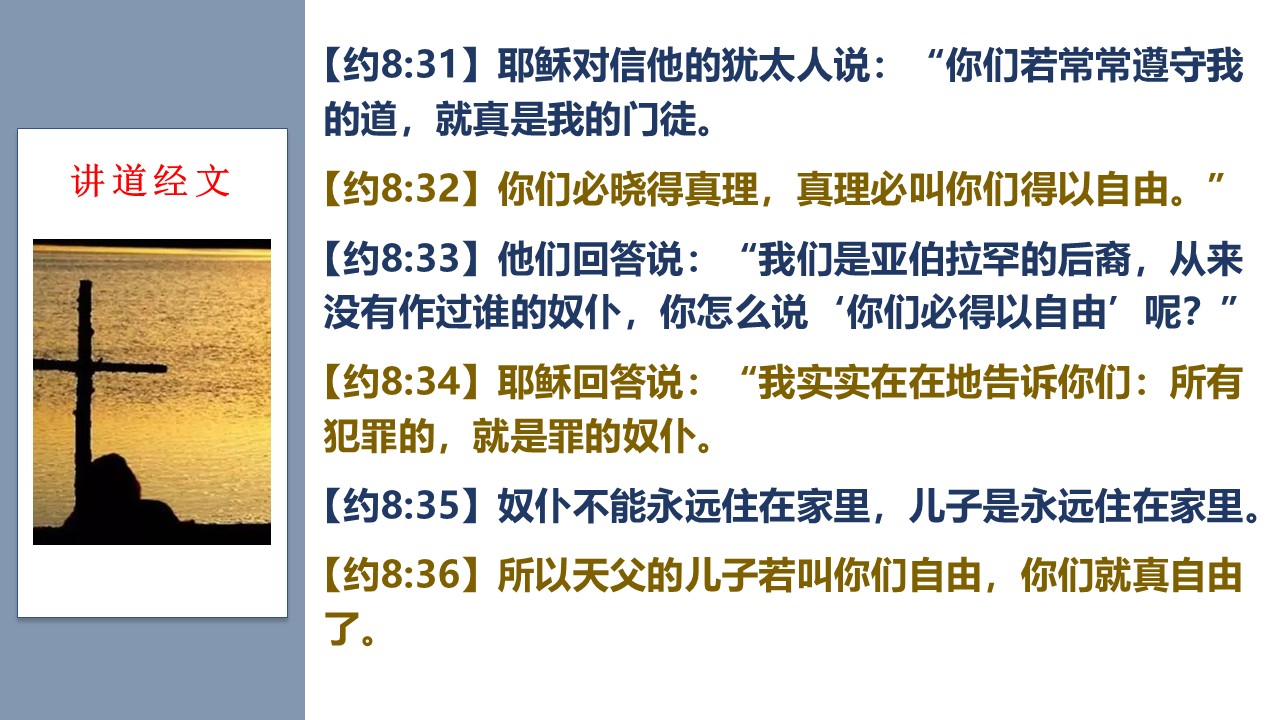主基督宣告,唯独天父的儿子,能让我们得自由