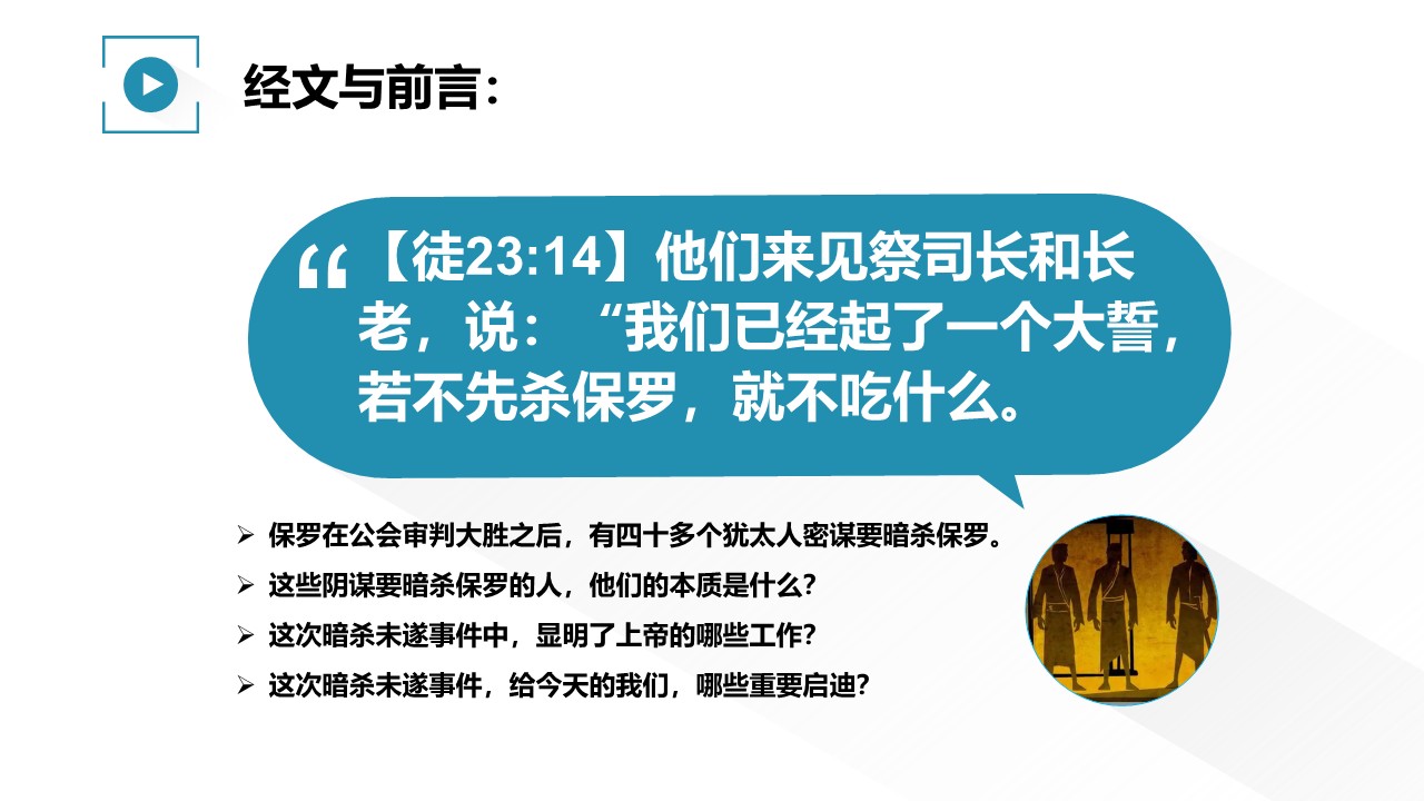 保罗在公会审判大胜之后,有四十多个犹太人密谋要暗杀保罗。