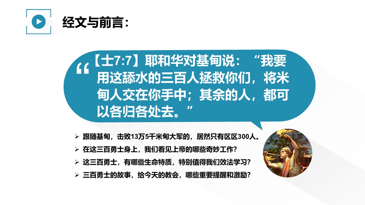 标签: 三百勇士 信心 勇士系列 勇敢 基甸
