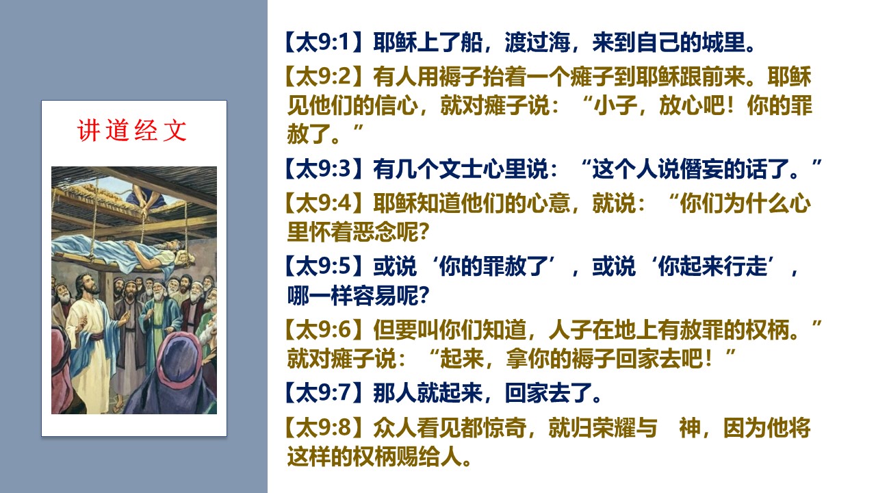 祂医治瘫子时所做的,显明了哪些福音的特征?