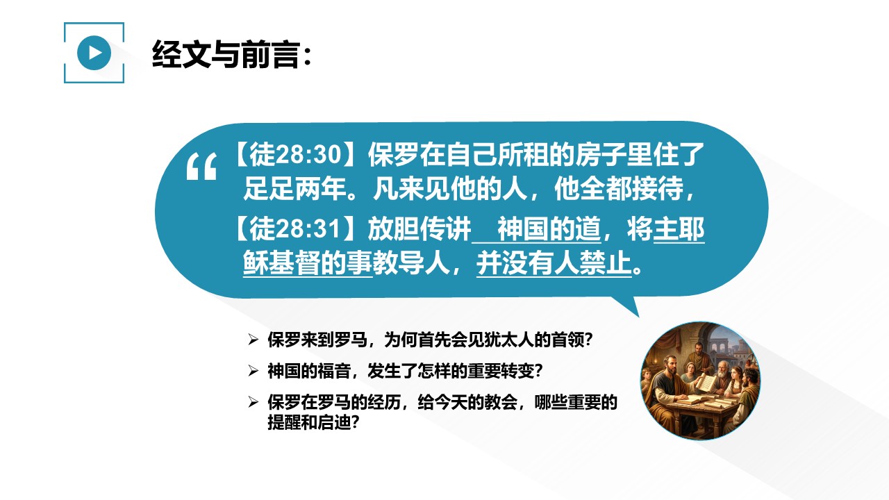 保罗在罗马的经历,给今天的教会,哪些重要的提醒和激励?