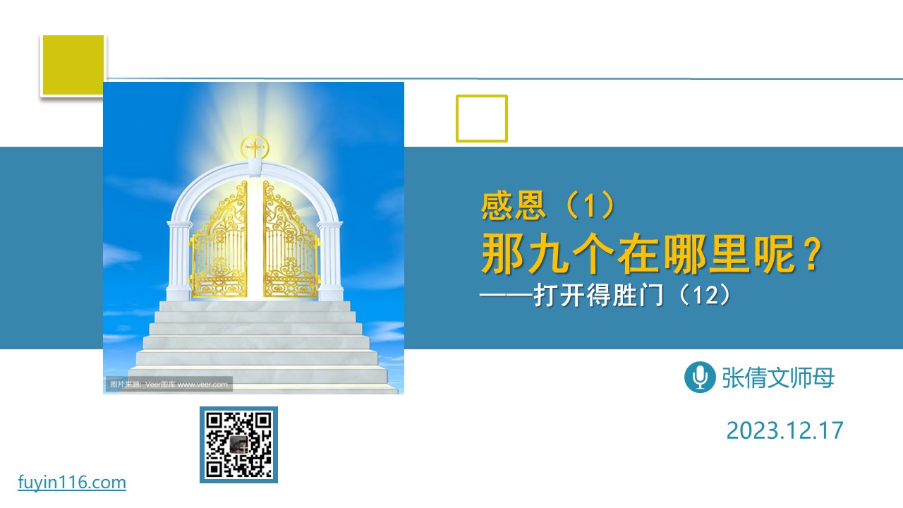 主耶稣曾经医好了十个大麻风病人,其中只有一人回来感恩。 这个故事,告诉我们“恩典的真理”是什么? 上帝赐给我们有哪两种恩典,两者的关系如何? 感恩的真义,到底是什么? 愿上帝的祝福借着祂的真道,更多地临到每一个认真聆听的灵魂。 欢迎您收听: 《那九个在哪里》 https://jdbs116.top/ztxf 您也可以点击下面的链接,重温之前的信息: 《打开得胜门系列》 点击音频媒体前面的小三角“►”就可以播放 我们的阿爸天父,感谢…