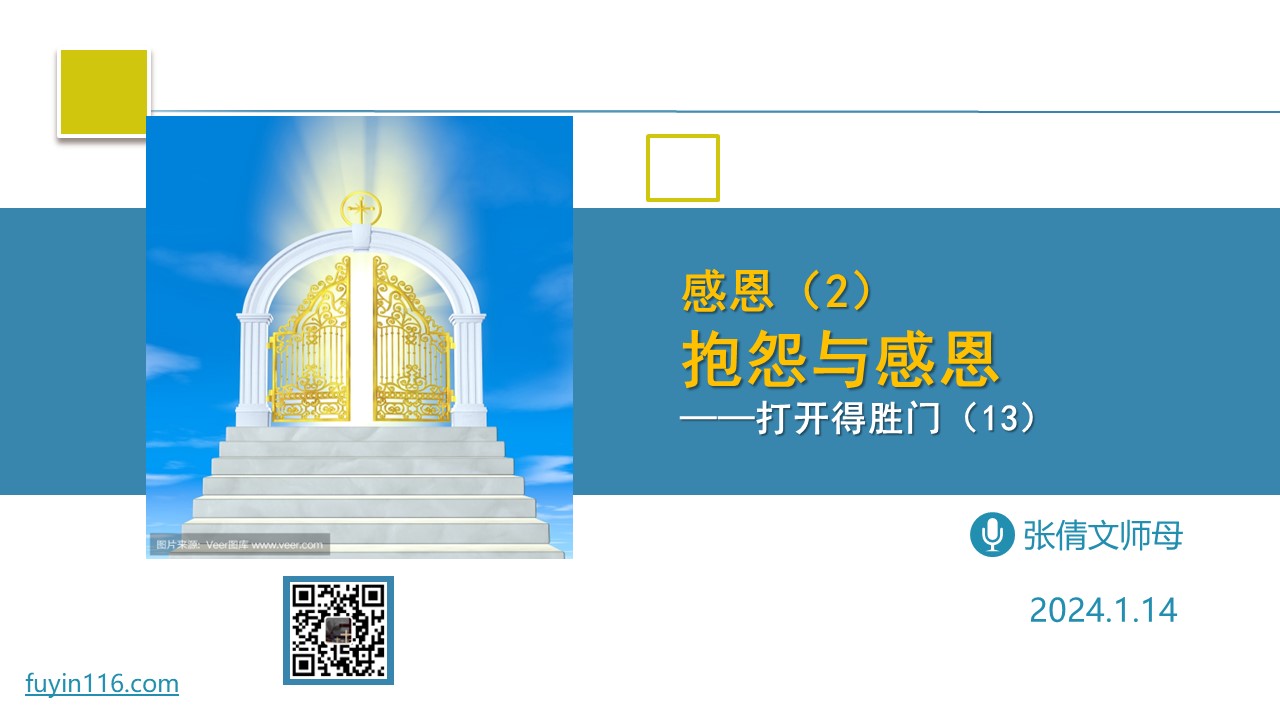我们为何会感恩? 我们抱怨的根本原因,又是什么? 感恩和抱怨,对我们的生命分别有怎样重大的影响? 愿上帝的祝福借着祂的真道,更多地临到每一个认真聆听的灵魂。 欢迎您跟着我们的文章的提示,参加视频直播或收听录音: 《抱怨与感恩》 https://jdbs116.top/81tn 您也可以点击下面的链接,重温之前的信息: 《打开得胜门系列》 点击音频媒体前面的小三角“►”就可以播放 我们的阿爸天父,感谢赞美你 感谢你赐给…