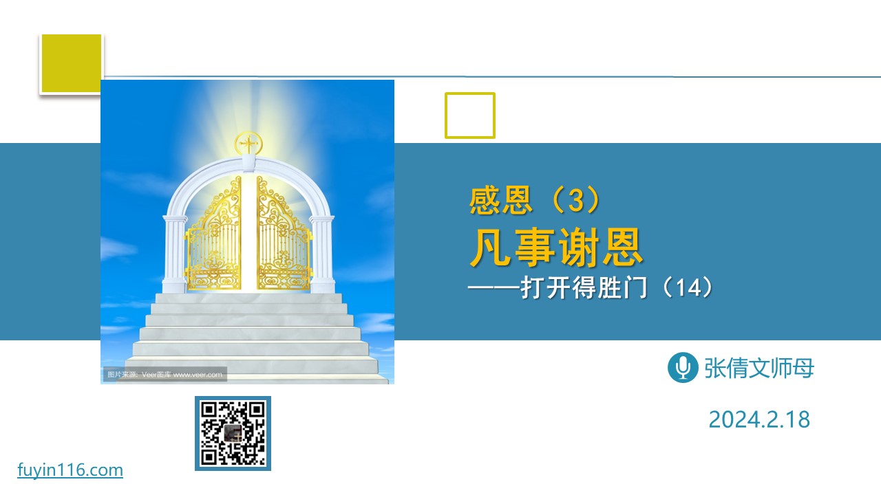 上帝为什么命令我们要“凡事谢恩”? 我们该怎样“凡事谢恩”? “凡事谢恩”与主基督,有怎样的关系? “凡事谢恩”,会带来怎样的果效? 愿上帝的祝福借着祂的真道,更多地临到每一个认真聆听的灵魂。 欢迎您收听: 《凡事谢恩》 https://jdbs116.top/4i9q 您也可以点击下面的链接,重温之前的信息: 《打开得胜门系列》 ⚠️⚠️⚠️ 注意 ⚠️⚠️⚠️ 因为微信会有较严苛无理的屏蔽做法,所以我们网站的文章,经常会出现在微信里无法正常打开的情况。 遇到这种情况,大家不用慌,只要在微信对话或…